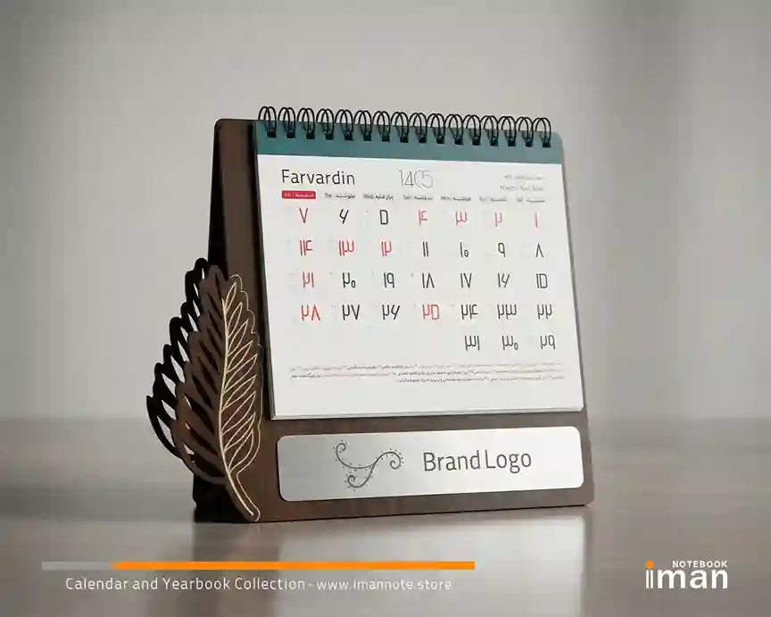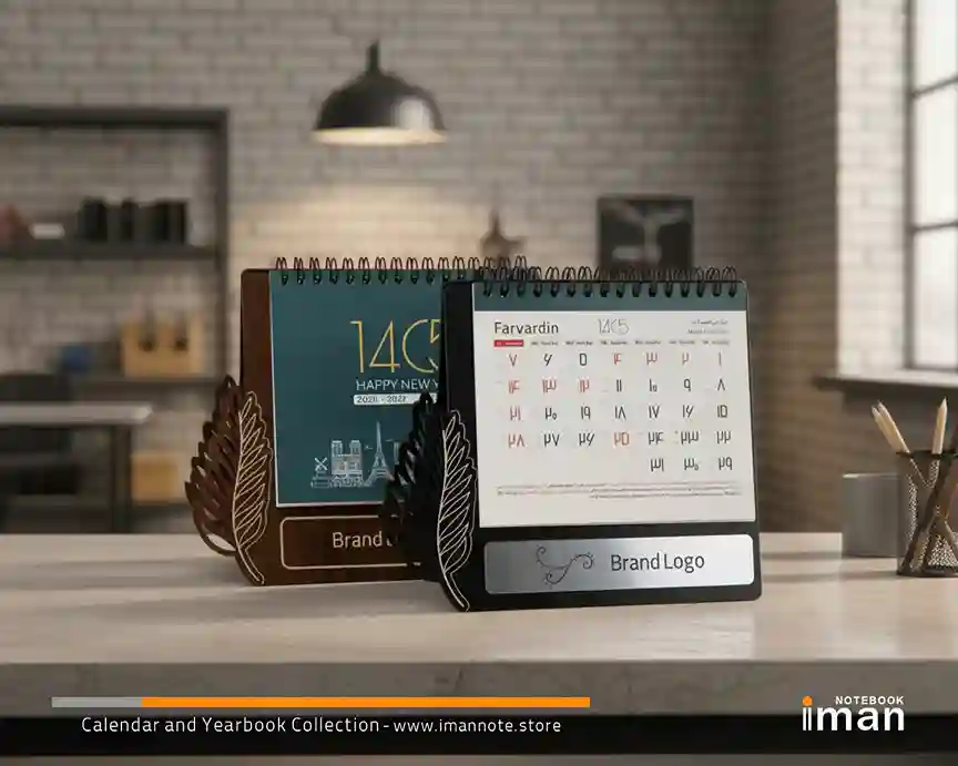 برای شخصی‌سازی این محصول، گزینه‌های متنوعی دارید: ۱. حک مستقیم لیزری: لوگوی شما مستقیماً در بافت چوبی حک می‌شود که ظاهری بسیار شیک و همیشگی دارد. (در مدل مشکی، این حکاکی به رنگ روشن درآمده و تضاد بسیار زیبایی ایجاد می‌کند). ۲. پلاک مولتی‌استایل: می‌توانید از پلاک‌های درخشان نقره‌ای یا طلایی استفاده کنید که روی بدنه چوبی تقویم، مانند یک جواهر می‌درخشند و اعتبار برند شما را دوچندان می‌کنند.